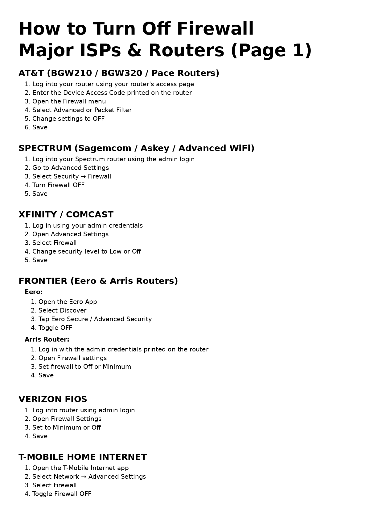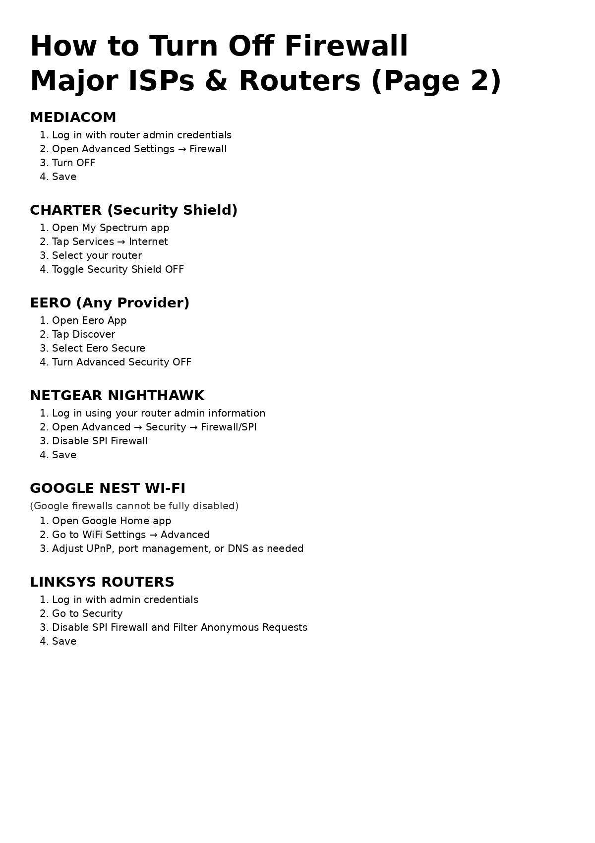 FIREWALL SECURITY SPECTRUM INTERNET XFINITY-COMCAST AT&T INTERNET FRONTIER INTERNET COX INTERNET VERIZON INTERNET T-MOBILE INTERNET OPTIMUM INTERNET GOOGLE INTERNET OTHER OPTIONS ADVANCED OPTIONS